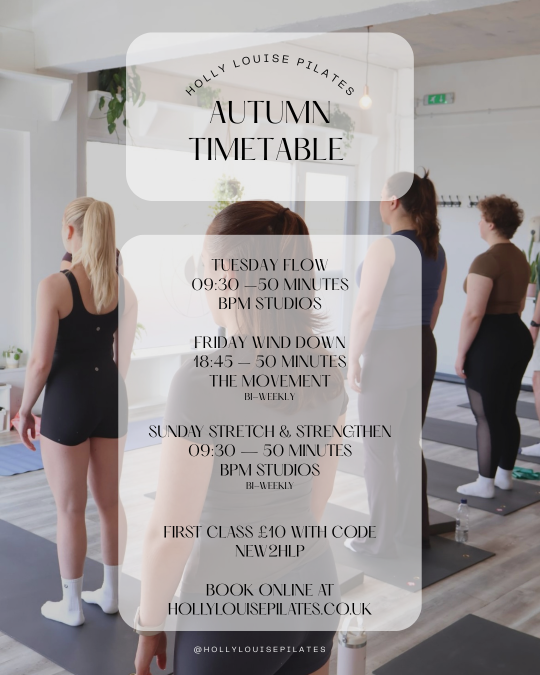 “I loved my class with Holly Louise Pilates. A great way to start my weekend feeling relaxed while also building strength and flexibility. Holly is such a lovely instructor and is very welcoming of all abilities. I will definitely be booking again. Thank you so much!”
